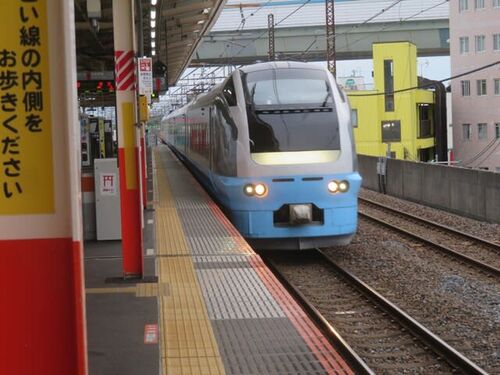 今日は西武ドームに行ったもののライオンズ敗戦でがっかりして帰ってきました。しかし、最後にいいことがありました。次の列車が臨時特急「鎌倉」ということを知ったので、撮り鉄としては待って写真ネタにしたいところです。もっとも、旧中央本線E257系だろ…
